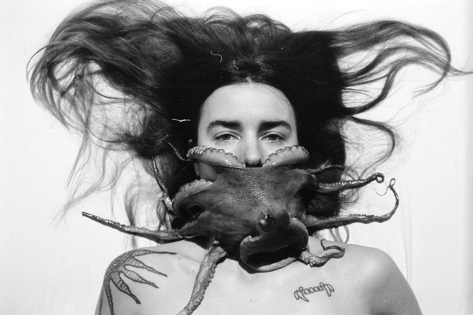 As I’m about to close my laptop with a still very empty document of notes, Anonas finally breaks free from his cross-armed position and leans over the table towards me. He squints his eyes as he fixes his gaze on the back of my laptop. “What is that motif there on your computer?” he asks, and everyone turns their heads. “Oh, it’s a Horror House sticker. They threw a party on the American election night last year and made these stickers for it. Cool, right?” I say, smiling. “But it’s an octopus!” Anonas states and gets all wild on his chair again. I’m confused. “Yes?” I ask, “The octopus is an antisemitic symbol” Anonzi says dryly, looking at me with eyes full of worry. So much for my finishing-on-a-light-note plan. Standing in the doorway with my laptop underneath my arm, I wave goodbye to everyone. “To be continued!” I smile and leave My Professor’s office. I shake my head, laughing, as I roam through the empty halls again. I have a bunch of dudes and a sack of ART WHORE speedos awaiting me at the photo studio downstairs. The show must go on. I’m just not really sure whose show it is anymore.